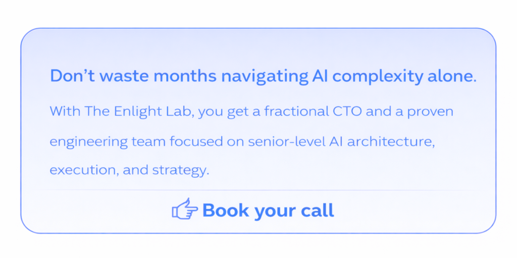 At Enlight Lab, this is precisely where our fractional CTO and technology consulting services deliver exceptional value. With over 18 years of executive-level technical leadership, we ensure your AI initiative is not just another IT project. Instead, it becomes a strategic and future-proof operational foundation. We architect infrastructure that is secure, modular, and resilient to market shifts. This approach positions your digital workforce as a true asset, whether you are scaling into new markets or preparing for acquisition.